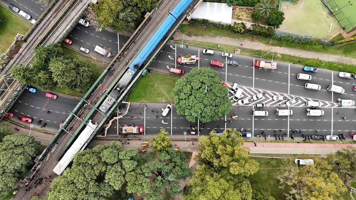 Trenes Argentinos comunica que una formación -con siete coches- de la línea San Martín colisionó con una locomotora y un coche furgón vacío, a las 10.31, en el kilómetro 4,900 – a la altura de la avenida Alcorta- sobre el viaducto Palermo.