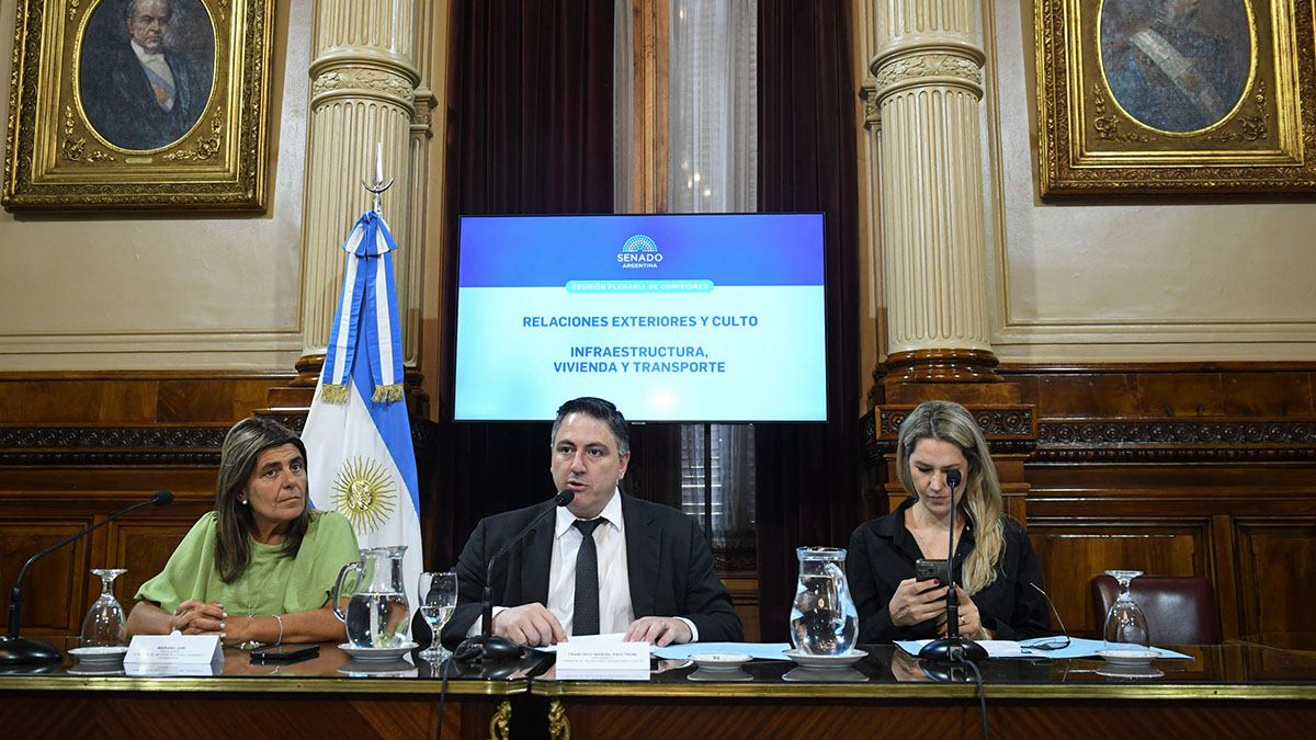 El Plenario de las comisiones de Relaciones Exteriores y Culto e Infraestructura, Vivienda y Transporte, presididas por el senador Francisco Paoltroni (LTP) y Mariana Juri (UCR), respectivamente, se reunió en la tarde de este miércoles en el salón Arturo Illía.