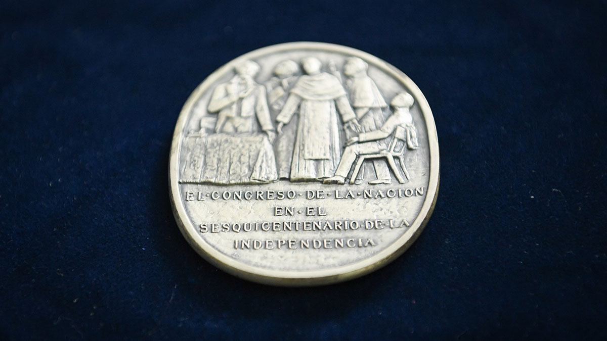 Entre las joyas de esta exposición, se alza la Medalla del Sesquicentenario de la Independencia, un verdadero tesoro diseñado por el renombrado artista Carlos de la Cárcova. Esta medalla, con su elegancia y detalle, celebra el 150º aniversario de nuestra independencia con una belleza que trasciende el tiempo. La obra de De la Cárcova, reconocida por su extraordinaria capacidad para inmortalizar el alma de la nación en metal, será el punto focal de nuestra exposición.